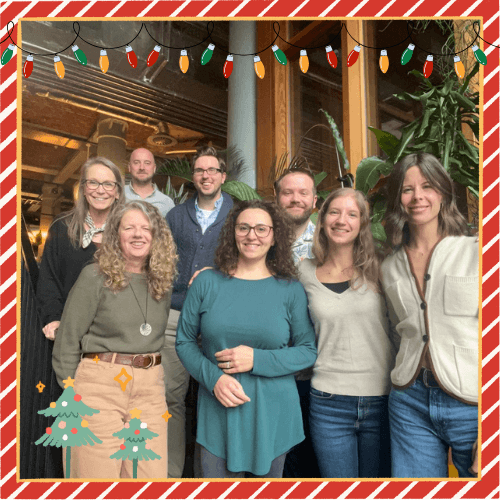 The A-Team (back row: Anna, Jim, Alex, and Rhys; front row: Clare, Steffi, Joanna, and Amy)